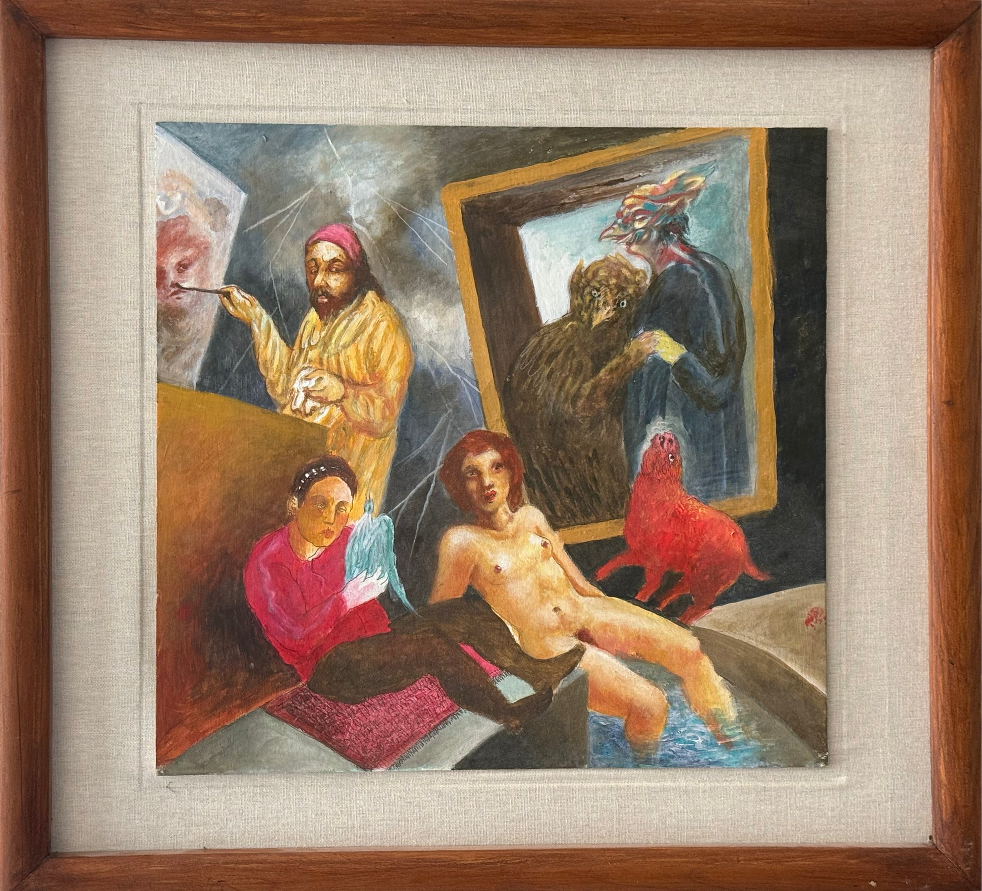 Daniel Kent - El pintor en su estudio / Acrílico sobre mazonite - 43 x 45 cm