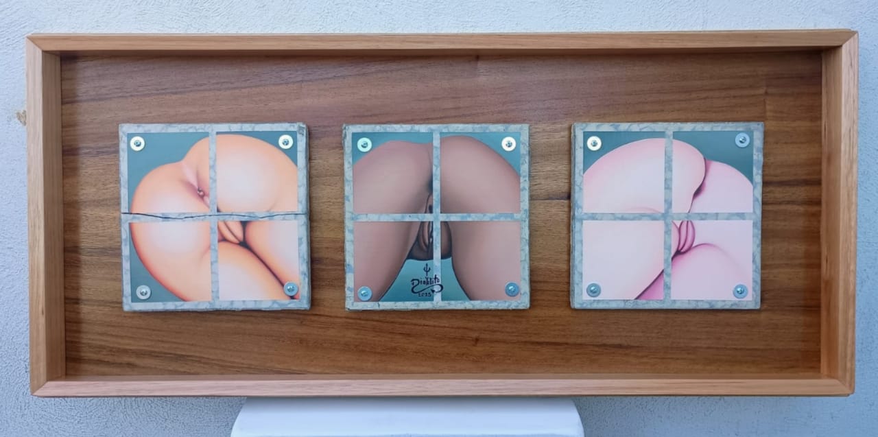 Diablito - Un desayuno perfecto (TRIPTICO) / Óleo sobre mosaico vintage historico - 26 x 26 cm