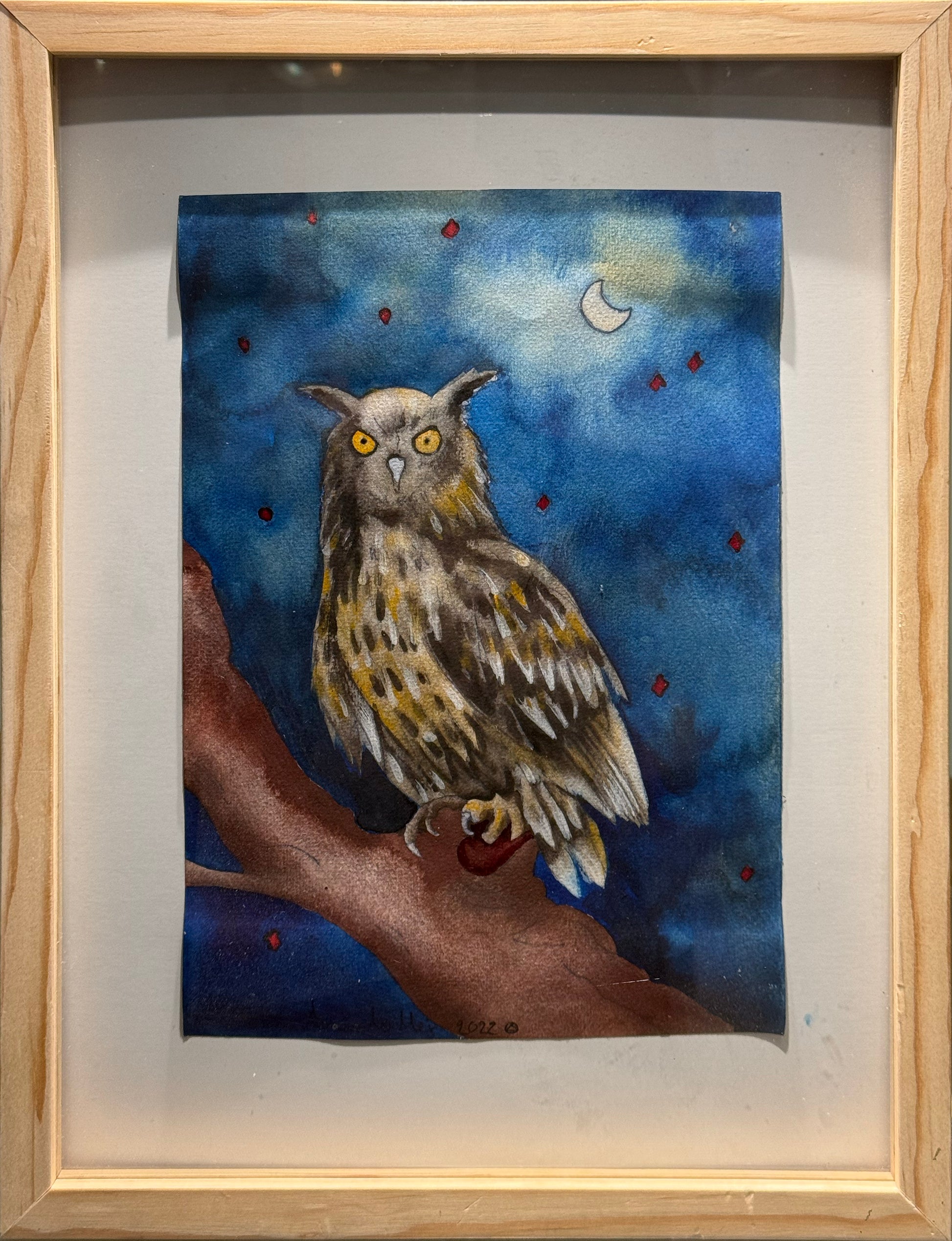Esteban Arévalo - Buho / Acuarela sobre papel - 17 x 24 cm