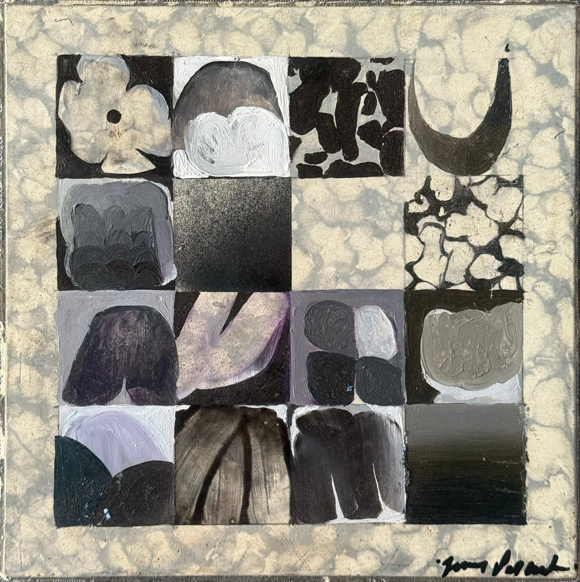 Juan Salmón - Vestigios III / Óleo sobre mosaico vintage historico - 26 x 26 cm