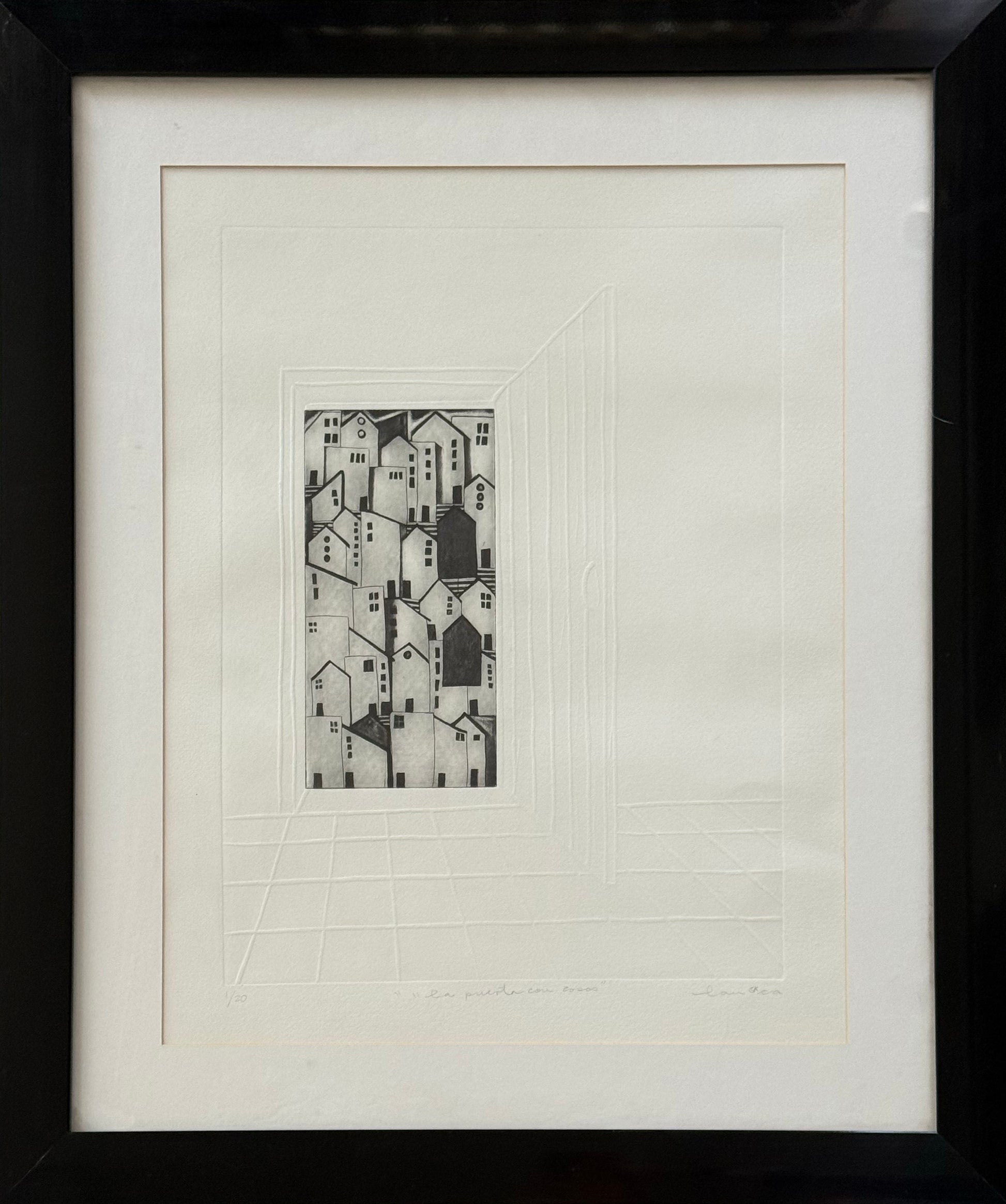Lote 17: Laura Castellanos - Puerta con casas / Agua fuerte y gofrado a dos placas - 40 x 30 cm