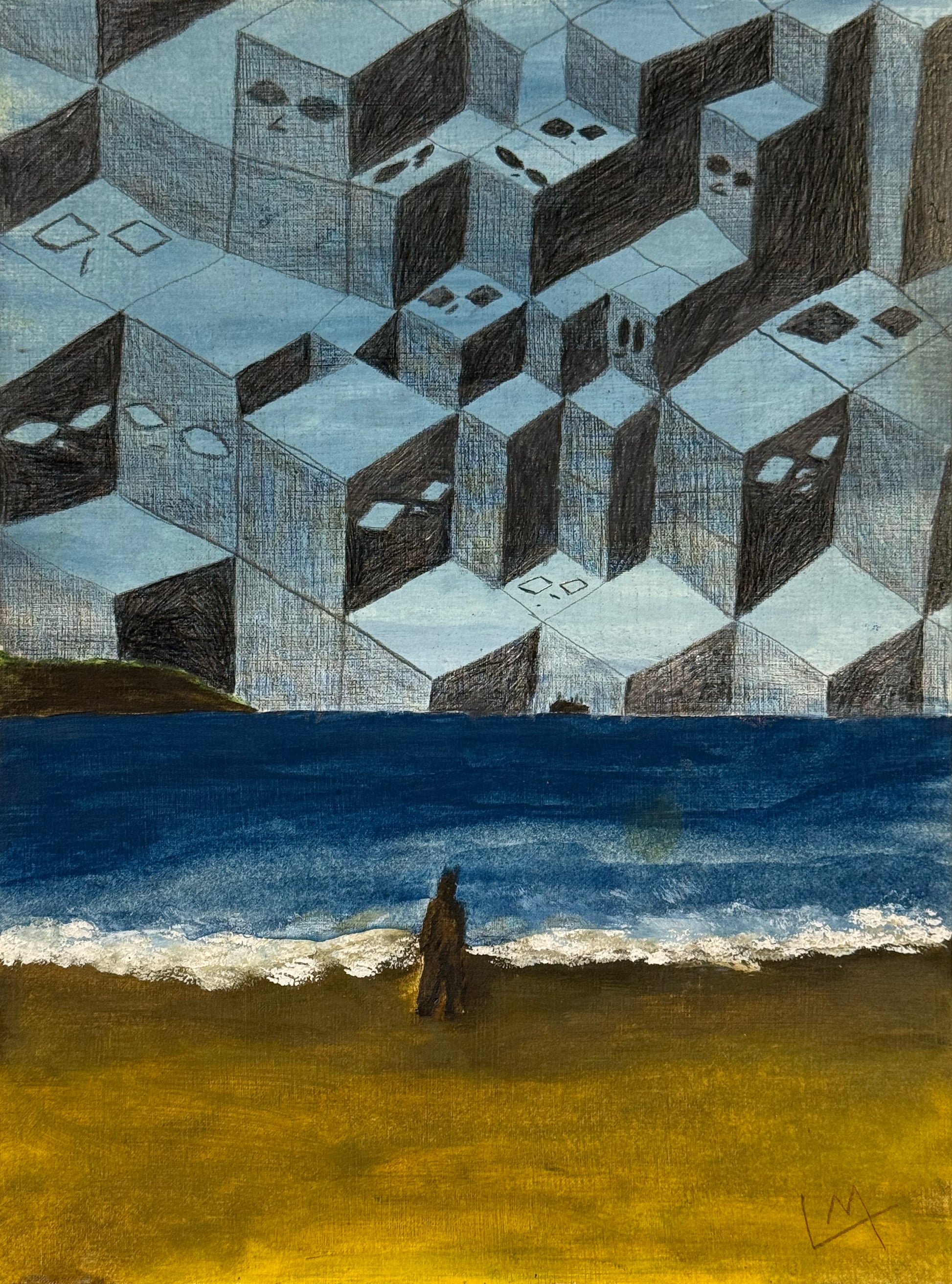 Lote 19 - LM - Cubos en el horizonte Óleo sobre tela 30 x 22 cm