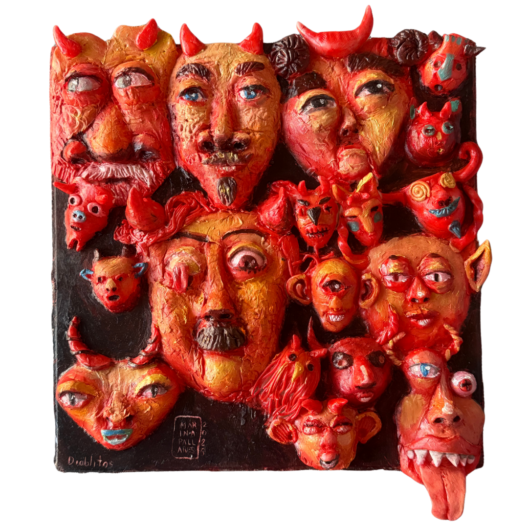 LOTE 010 / Marina Pallares - Diablitos / Pasta Francesa y óleo sobre mosaico vintage histórico - 26 x 26 cm