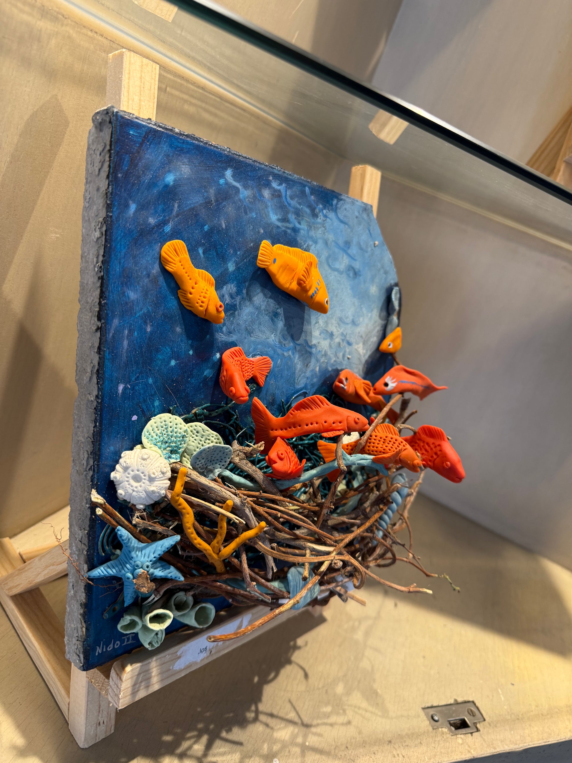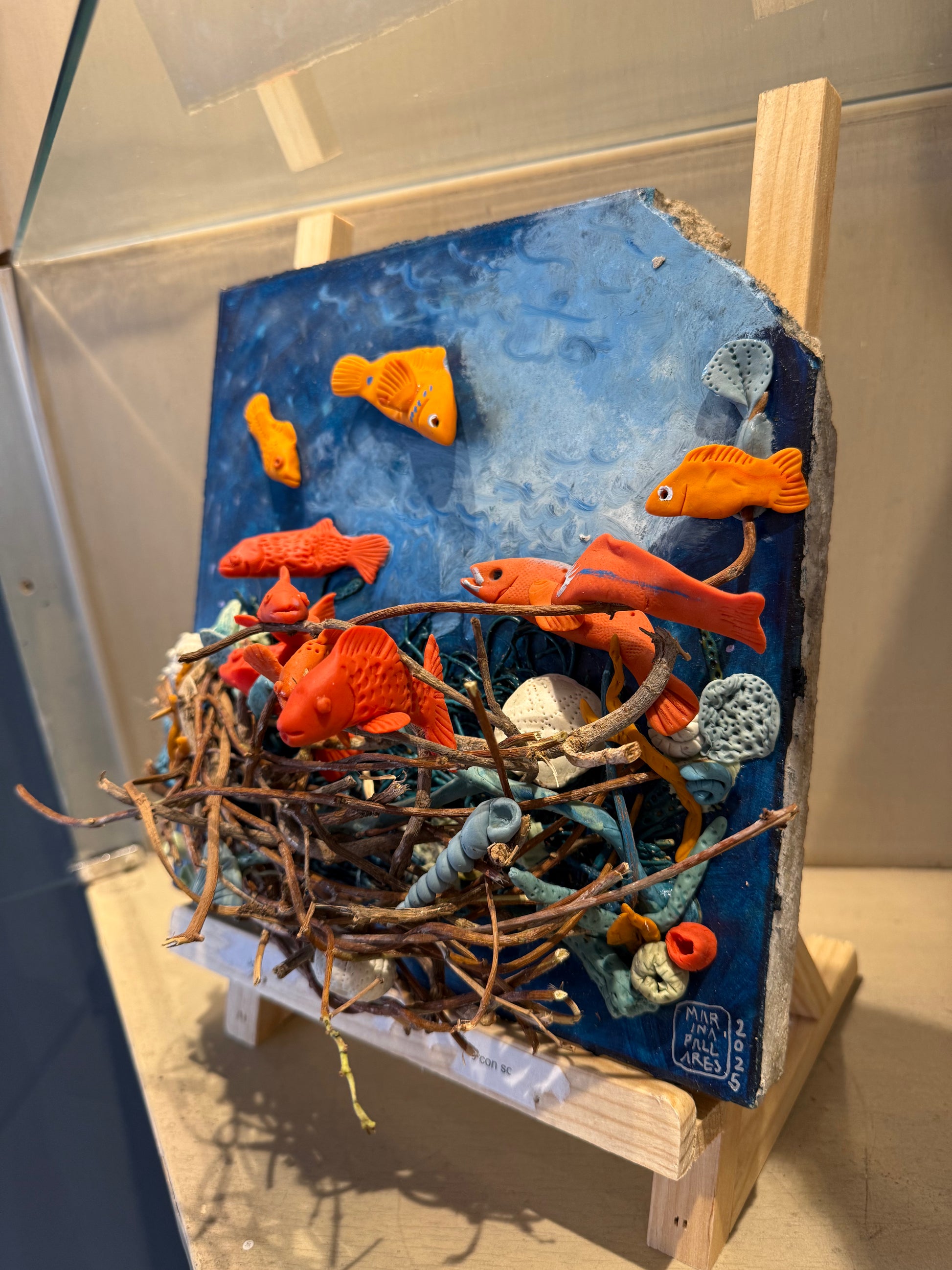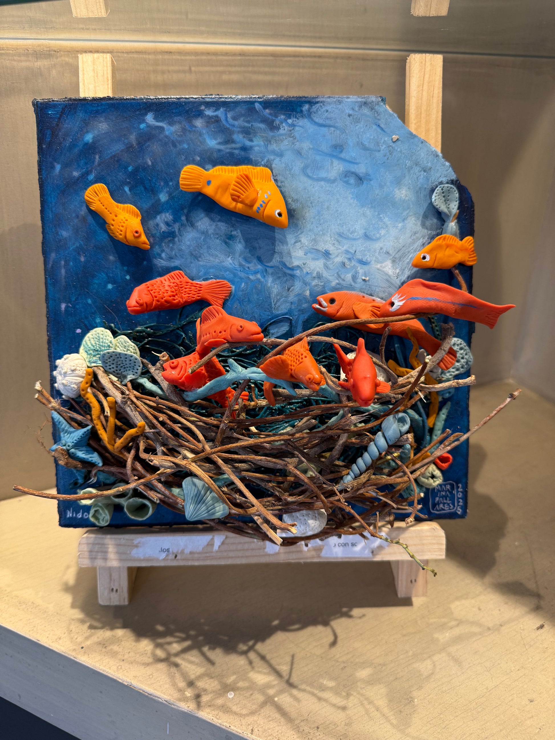 LOTE 024 / Marina Pallares - Mar #2 / Pasta Francesa y óleo sobre mosaico vintage histórico - 26 x 26 cm