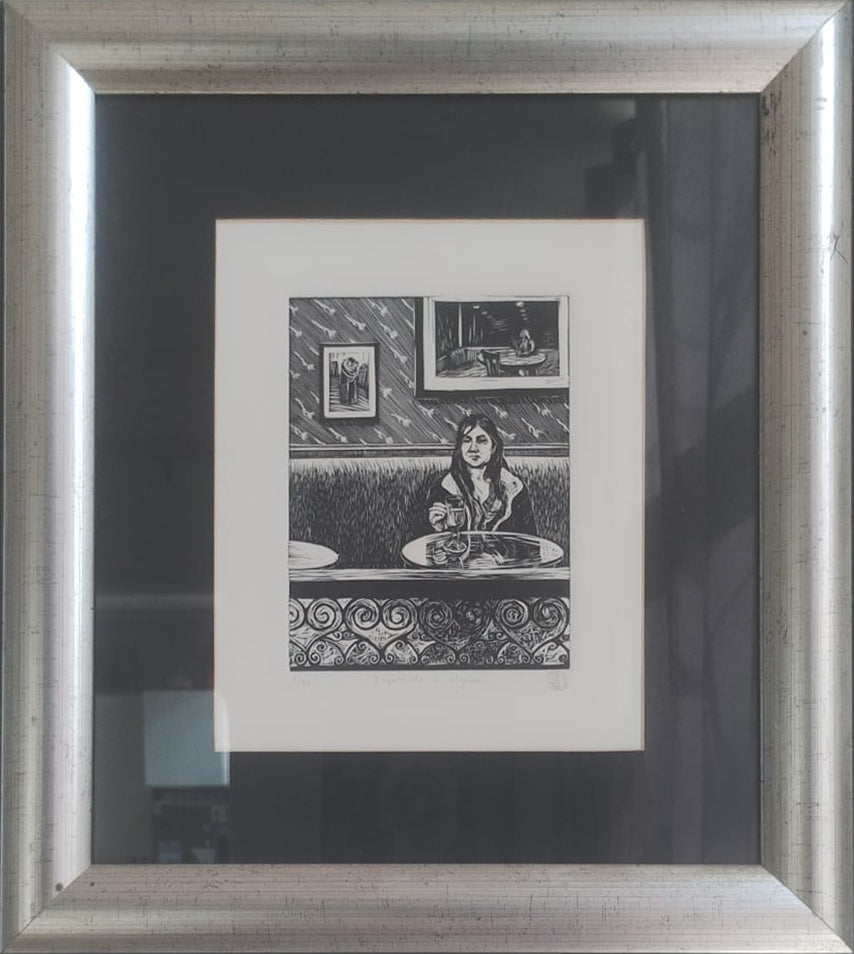 LOTE 057 / Marina Pallares - Esperando a alguien / Linóleo - 20 x 15 cm